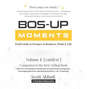 BOS-UP isn’t just a motivational business book. It’s a bold, visual, and actionable guidebook, playbook, and blueprint. Designed to help you and your team learn, leverage, and benefit from the convergence of business operating systems, AI, and coaching. Along with the leadership, management, teamwork, and accountability required. Integrated cohesively together into a custom-tailored solution, built for you. That’s the BOS-UP formula. Every page and chapter of the book is filled with impactful visuals, insights, examples, assessments, prompts, and recommendations you can apply immediately and consistently. BOS-UP provides the essential concepts, tools, and disciplines to help you: formalize your vision, align your team, define your objectives, maximize your productivity, minimize your issues, optimize your accountability, achieve your goals, generate profitable results, and be your best: in business, work, and life. If you are ready to build, run, and scale a successful and resilient company – so you can focus, align, and thrive in business, work, and life – this book is for you. But don’t wait. Or worse, hide. Because real momentum doesn’t just show up. You and your team need to create it. Own it. And make it happen. More good news: 100% of book proceeds go to nonprofit organizations that support under-resourced entrepreneurs. It’s not charity. It’s purposeful investment in future leaders.